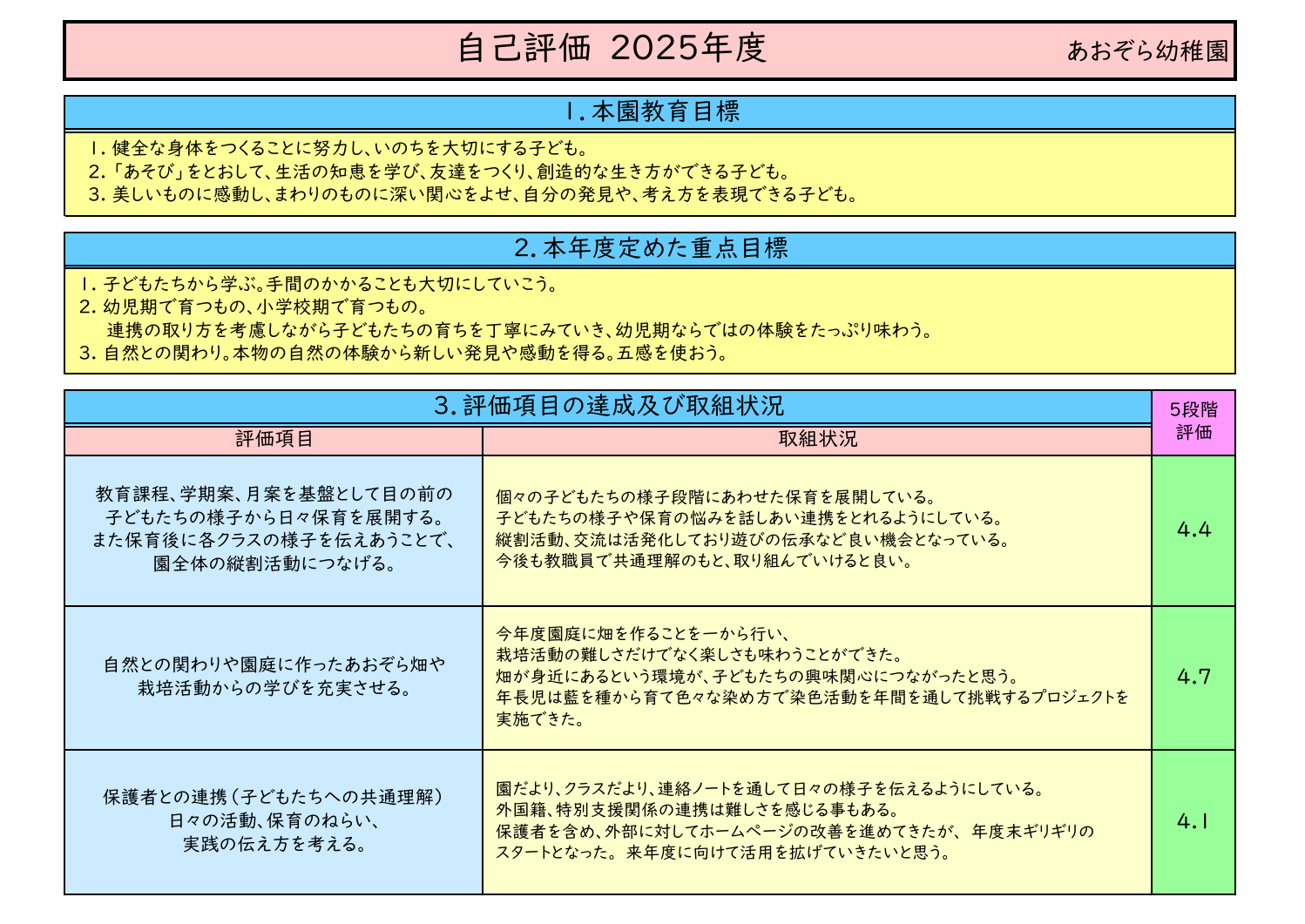 2.「あそび」をとおして、生活の知恵を学び、友だちをつくり、創造的な生き方ができる子ども。